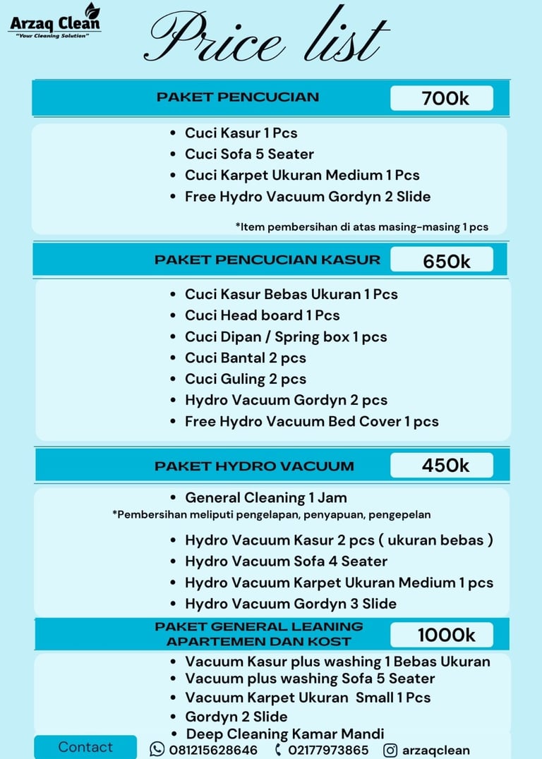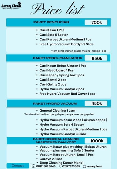 Layanan Arzaq Clean sangat memuaskan, rumah saya jadi bersih dan segar kembali.